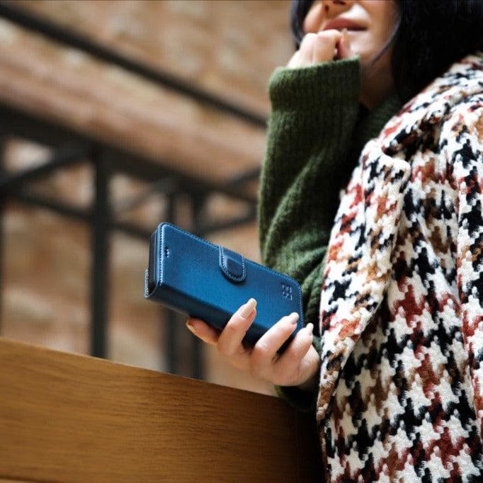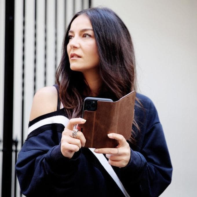 Genuine leather case that offers sophistication and functionality for your iPhone 13. Crafted with premium materials, it includes card slots, RFID protection, and wireless charge compatibility. With full protection, magnetic closure, and stand feature for hands-free operation, this case is a mix of class and convenience