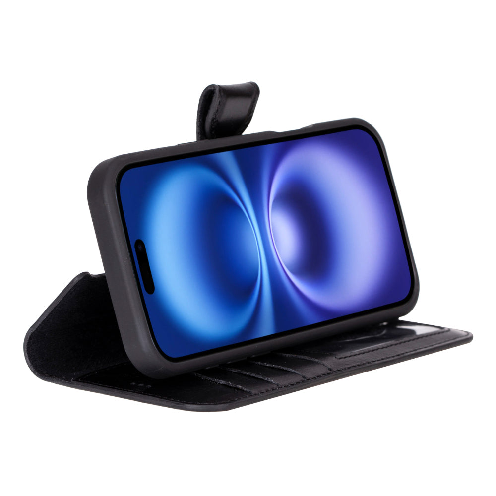 Genuine leather case that offers sophistication and functionality for your iPhone 16 Plus. Crafted with premium materials, it includes card slots, RFID protection, and MagSafe compatibility. With full protection, magnetic close, and stand feature for hands-free operation, this case is a mix of class and convenience